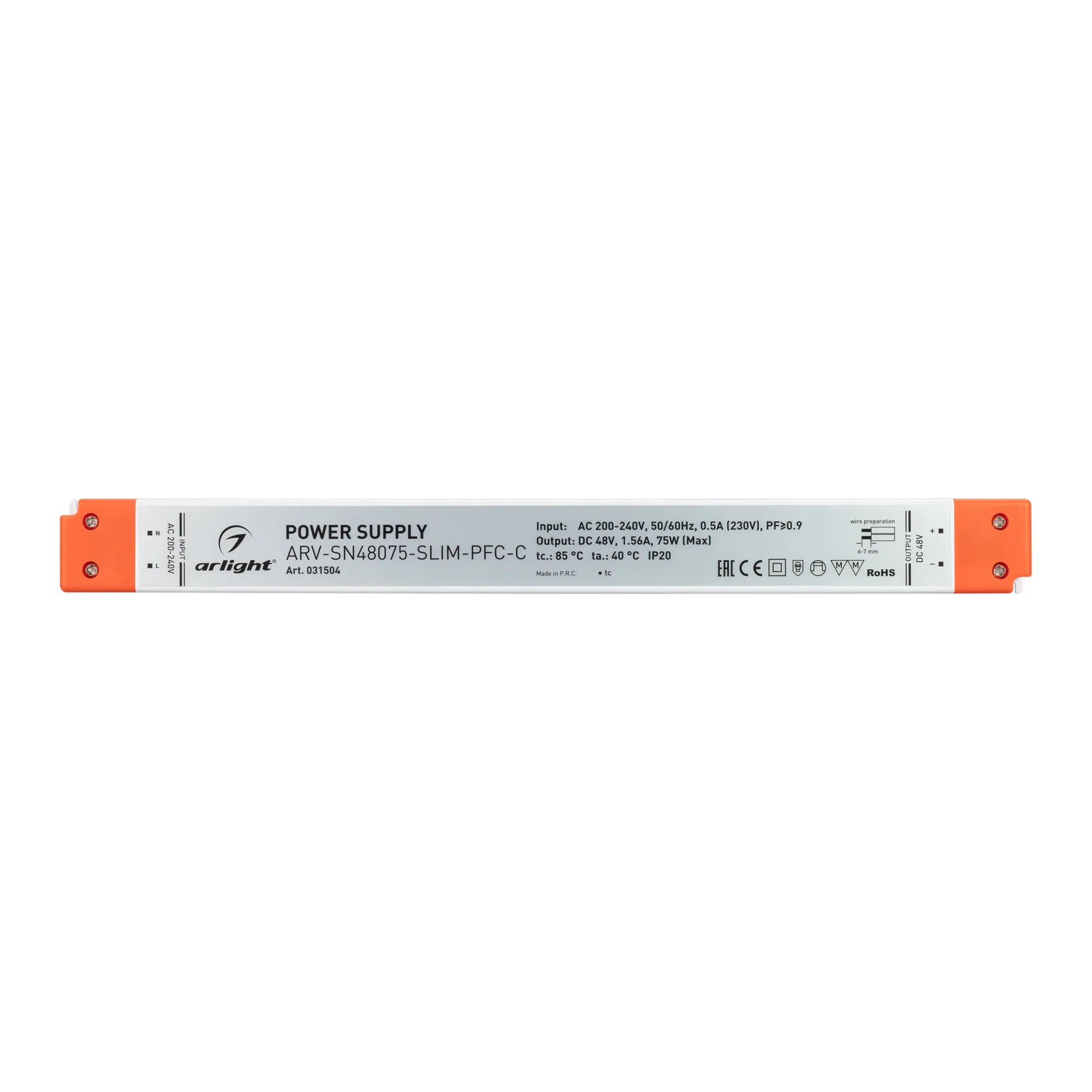 В магазине Arled Market Вы можете купить "Блок питания ARV-SN48075-SLIM-PFC-C (48V, 1.56A, 75W) (Arlight, IP20 Пластик, 3 года)"