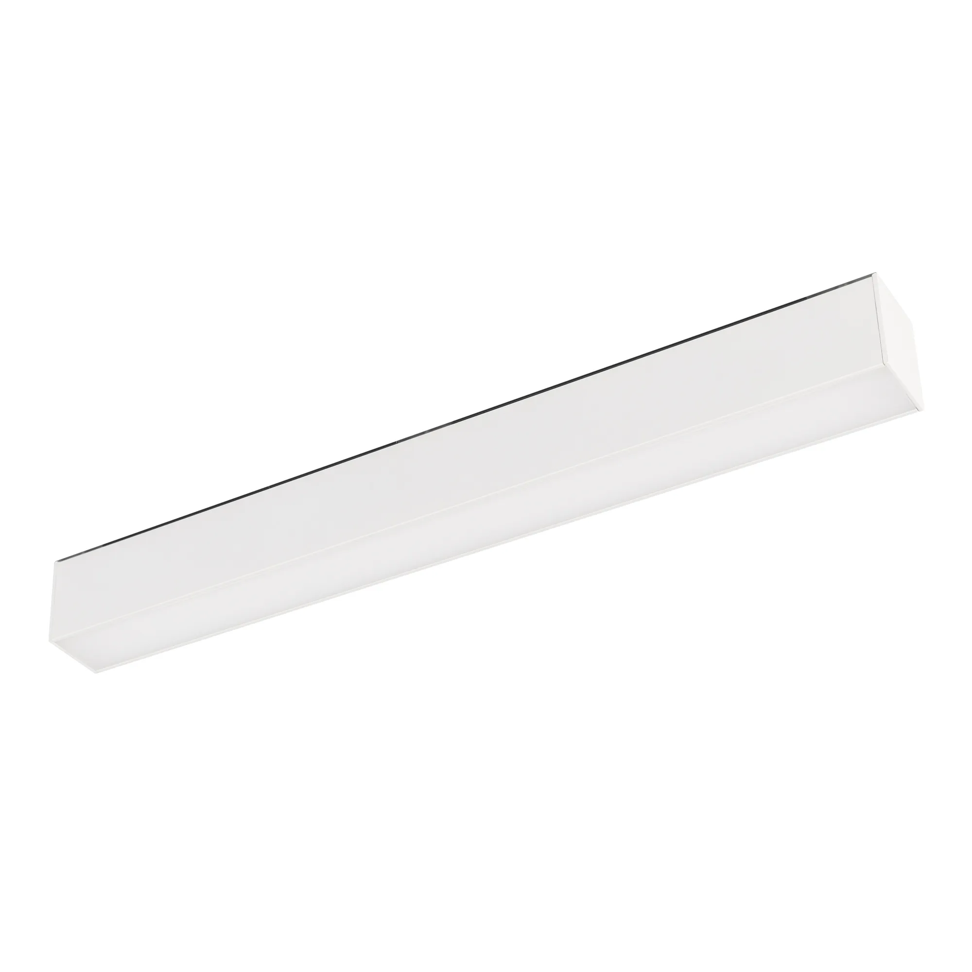 Светильник для магнитных треков шириной 45мм, 12Вт с управлением DALI. Цвет свечения ДНЕВНОЙ 4000K, световой поток 1300лм, угол 100°, CRI>90. Корпус прямоугольный, металл, цвет белый, IP20. Размеры LxWxH 404x35x43мм. Входное напряжение DC24V, мощность 12Вт. Драйвер поставляется отдельно.