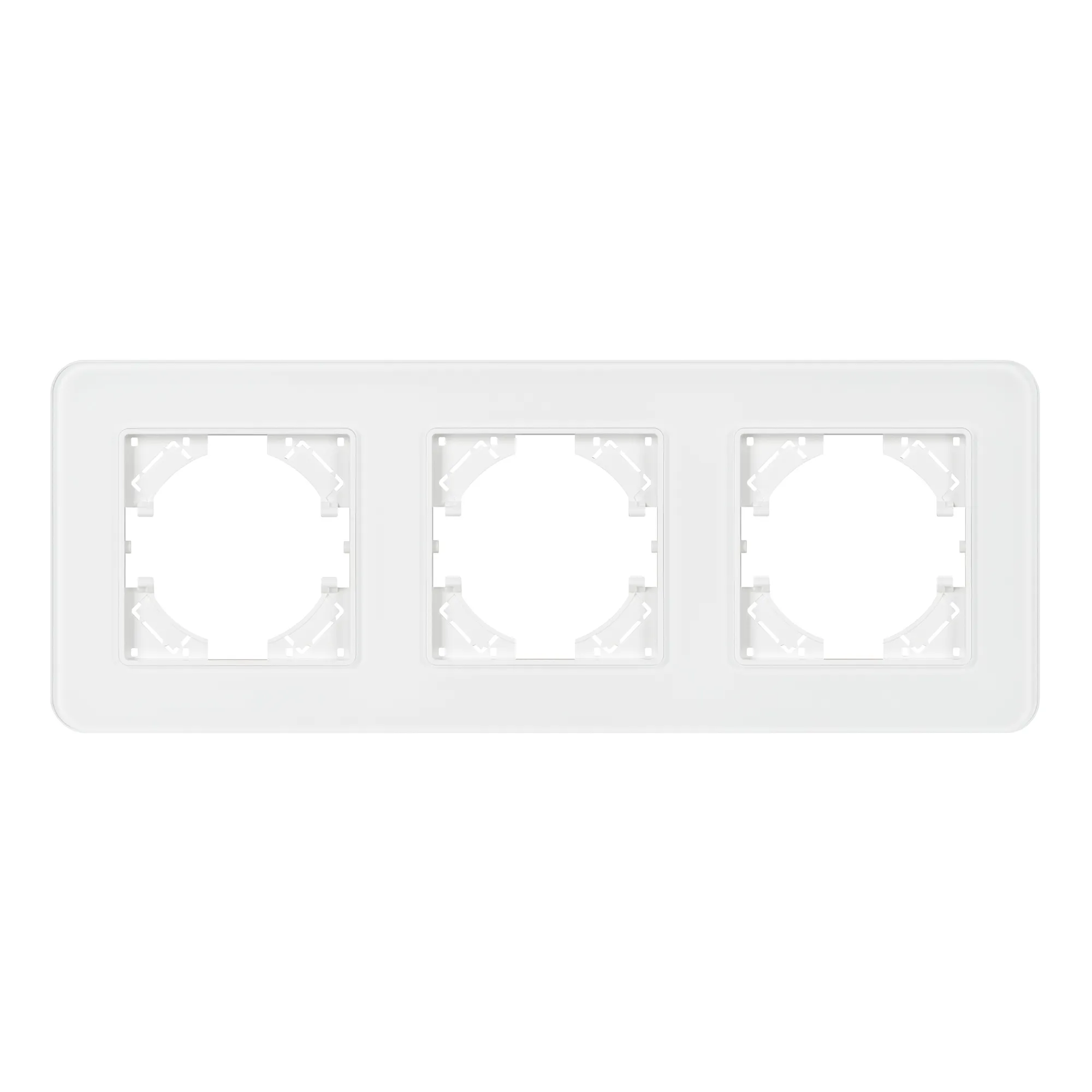 Рамка стеклянная на 3 поста, под встраиваемый механизм. Цвет - белый с Soft-Touch покрытием. Уровень герметичности IP20. Ориентация монтажа - горизонтальная (основным ориентиром служат посадочные выступы для накладки механизма). Габаритные размеры: длина 228 мм, ширина 86 мм, высота 7 мм. Гарантийный срок 12 мес.