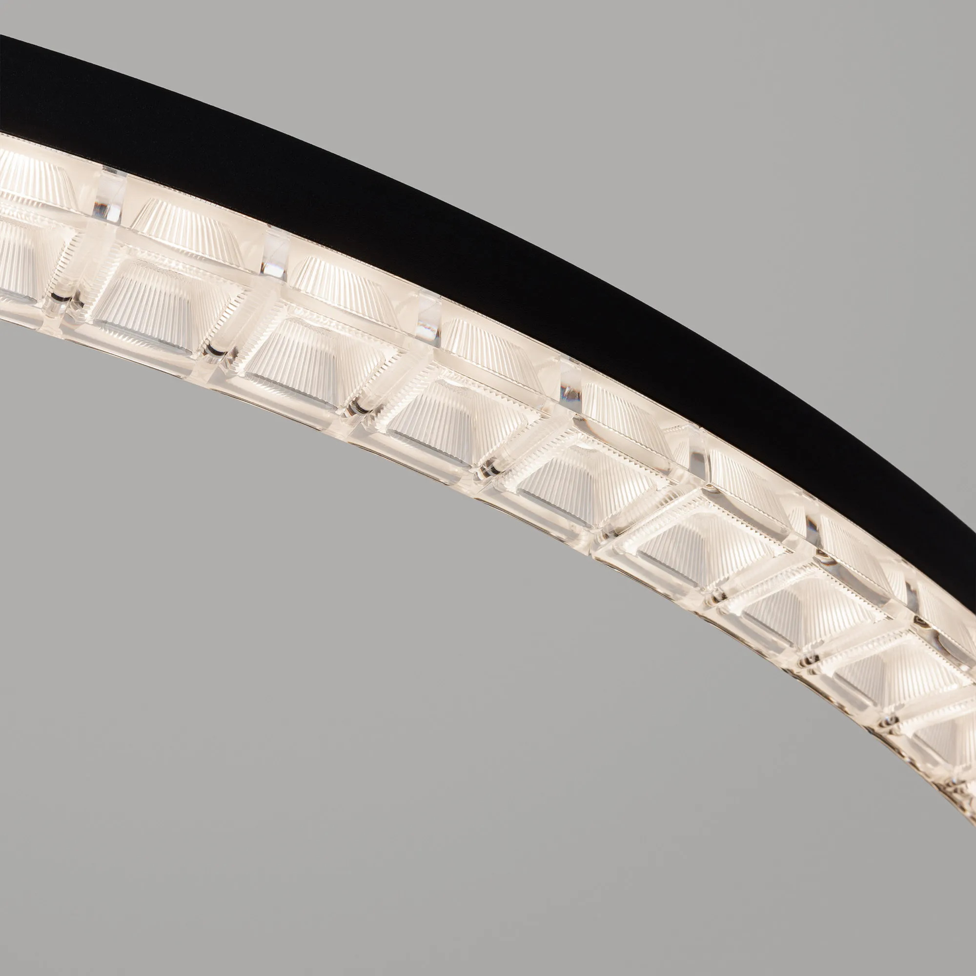 Подвесной светильник. Мощность 80 Вт, св. поток 7010 лм, 80-95 лм/Вт, дневной белый 4000 K, CRI>90, угол 45°, напряжение питания 230 В. Черный круглый корпус из алюминия, экран PMMA, степень защиты IP20. Размер: диаметр 1250 мм, высота 34 мм, ширина профиля 30 мм, размер чаши: диаметр 65 мм, высота 26 мм. Монтаж подвесной, длина подвеса 1200 мм, тип чаши встраиваемый, диаметр установочного отверстия чаши 60 мм. Драйвер (2 шт) 9-38 В, 1050 мА. Пульсация <0,3 %.