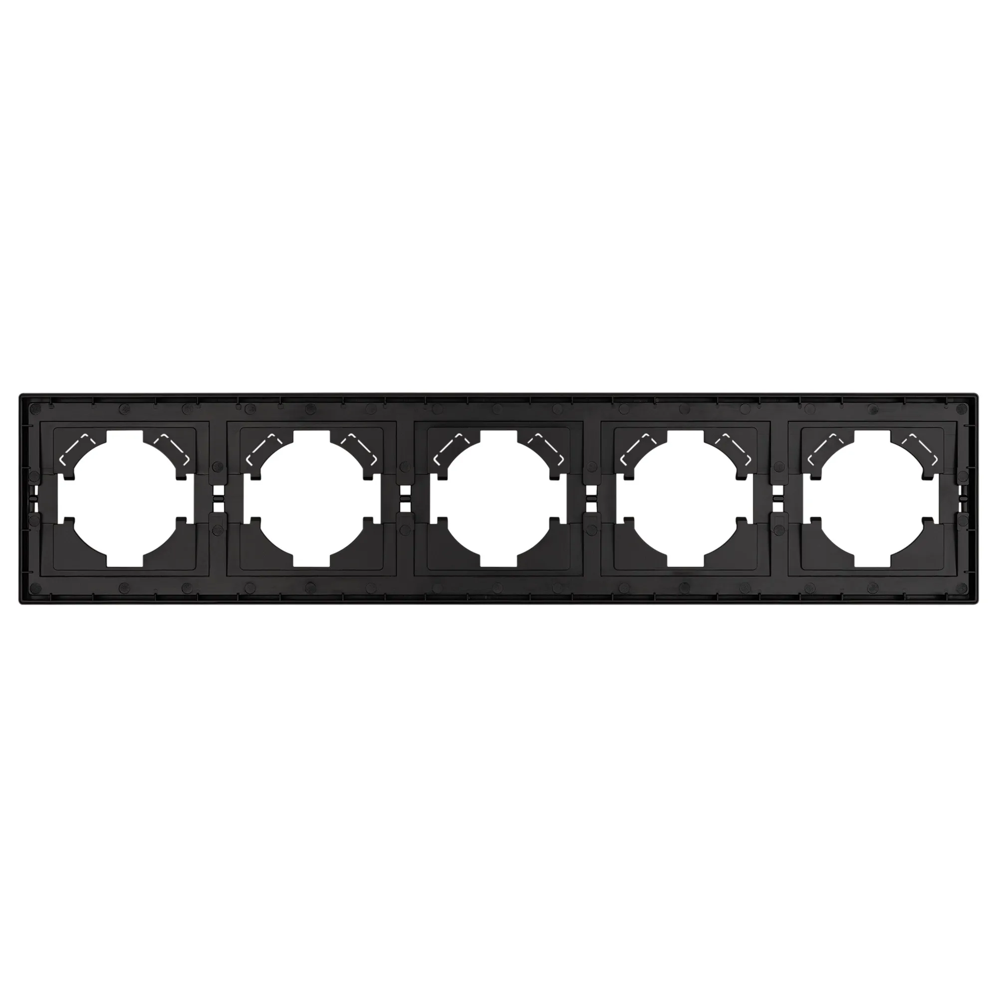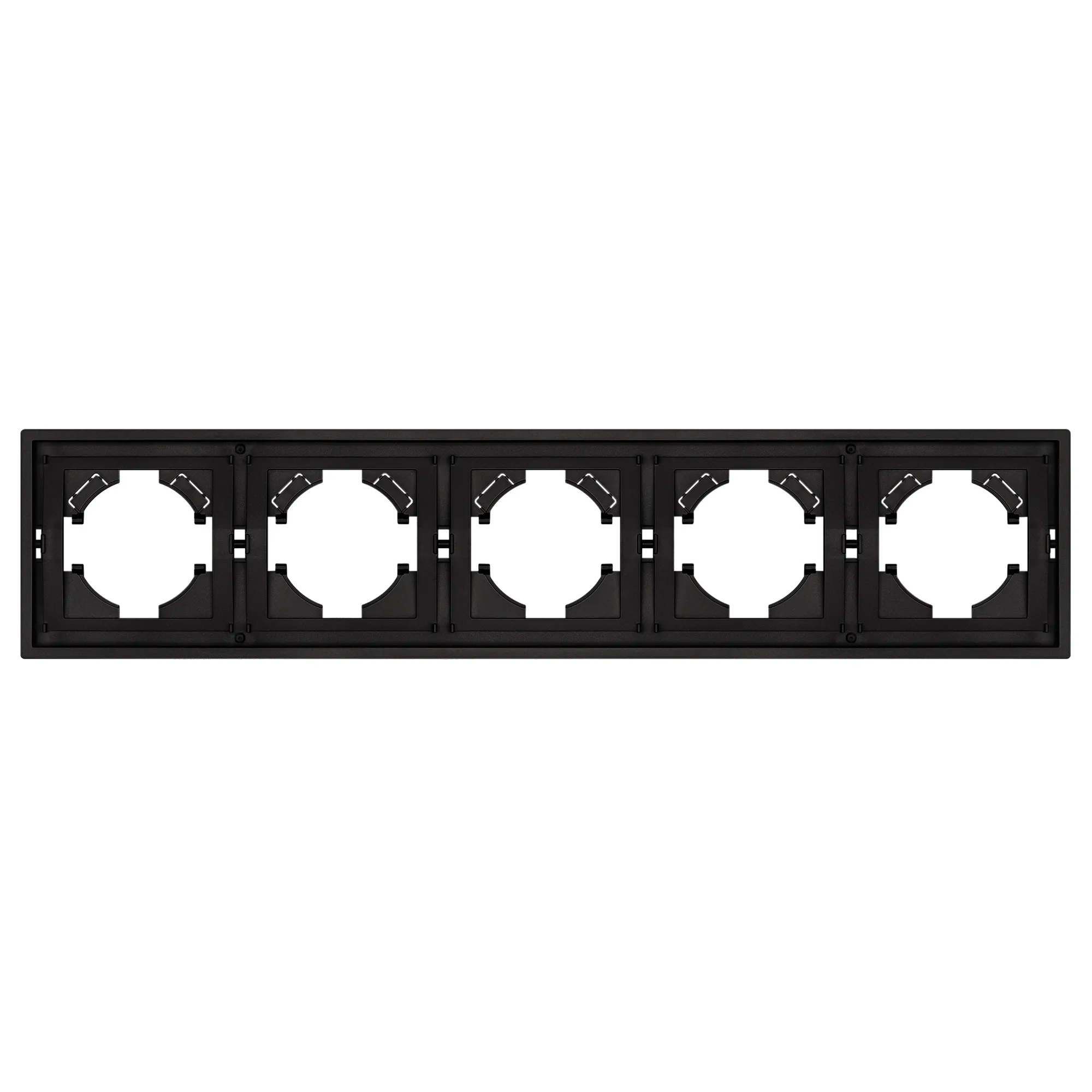 Рамка пластиковая на 5 постов, под встраиваемый механизм. Цвет - матовый черный, с Soft-Touch покрытием. Уровень герметичности IP20. Ориентация монтажа горизонтальная. Габаритные размеры: длина 364 мм, ширина 80 мм, высота 9 мм. Гарантийный срок 12 мес.